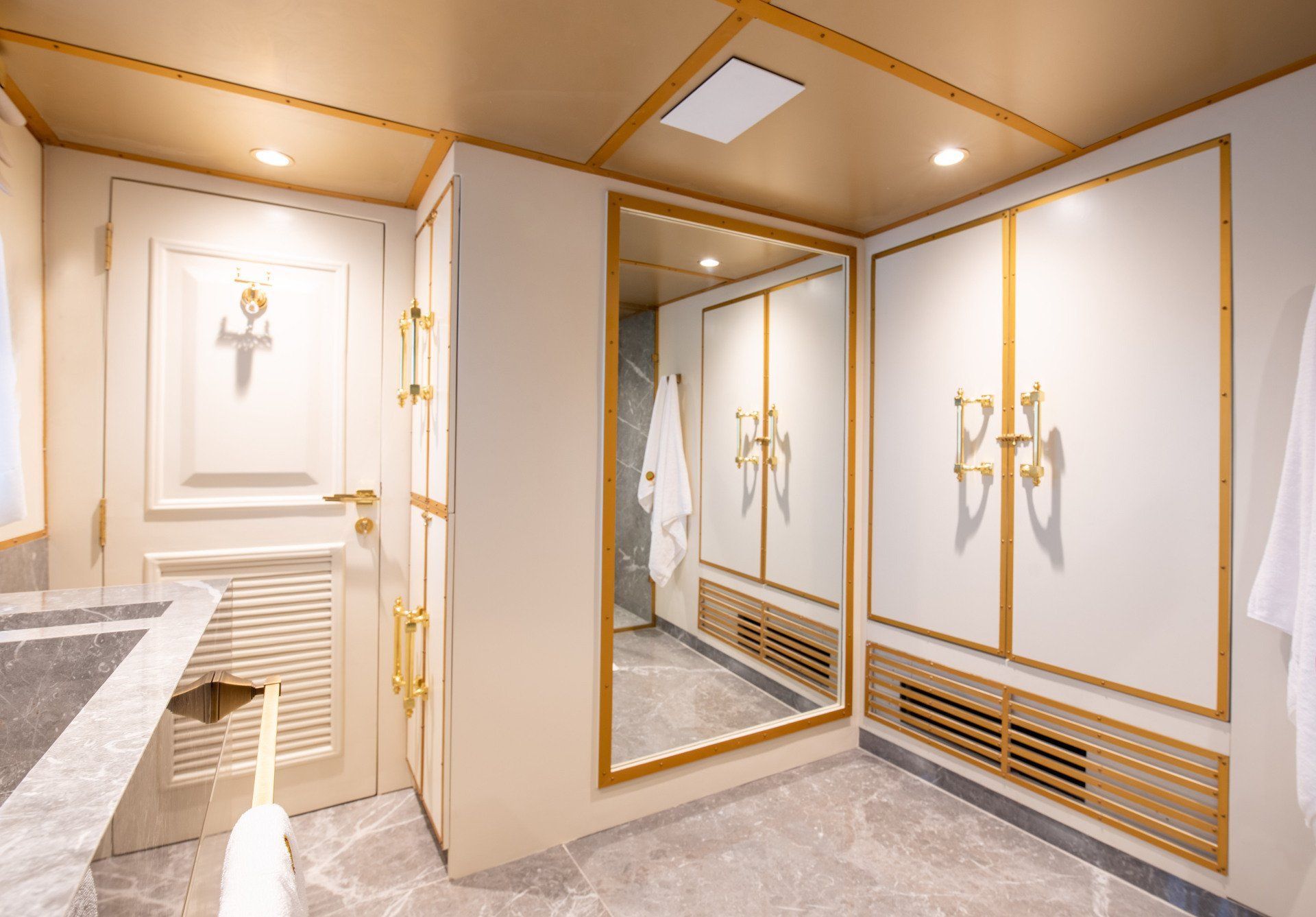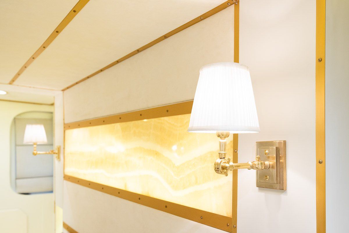 The plush new interiors are accented with gold against soft neutral tones that are accentuated by the ambient interior lighting.
